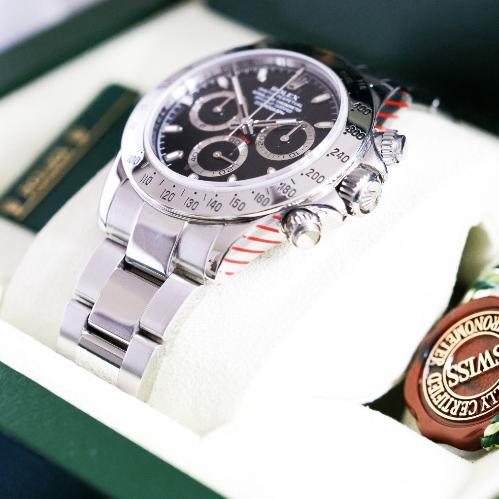 A collectors dream. This watch comes with its original box, papers and full service history. Also with the service stickers still intact.
